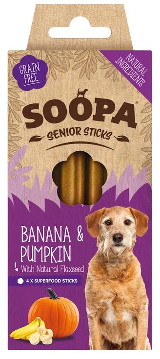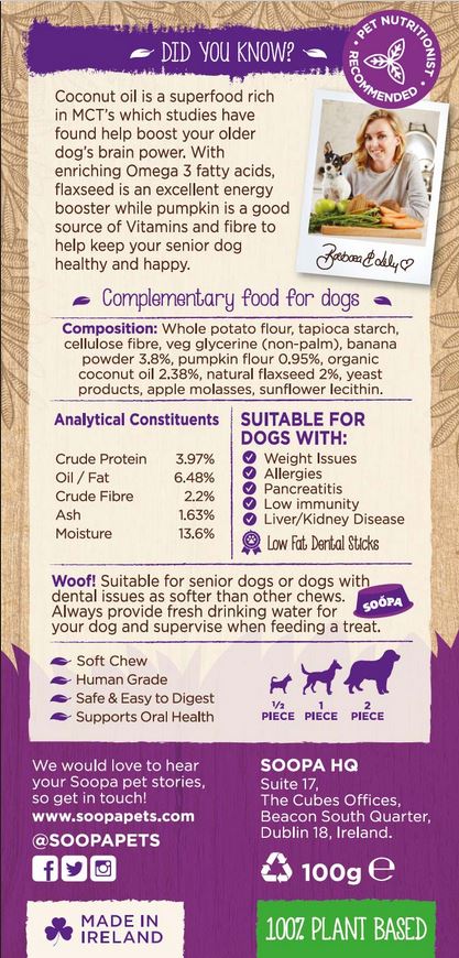 Mâchoirs végétaliens pour chiens seniors de Soopa» Bâtonnets dentaires fabriqués à partir de bananes et de citrouille 100% naturelles