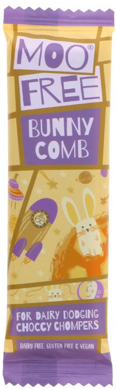 Ces barres de chocolat sans lait sont extrêmement populaires et ont un goût absolument fabuleux! ;-) Le Bunnycomb se compose du chocolat Moo Free (au goût de chocolat au lait), qui est saupoudré de morceaux végétaliens croustillants de caramel.