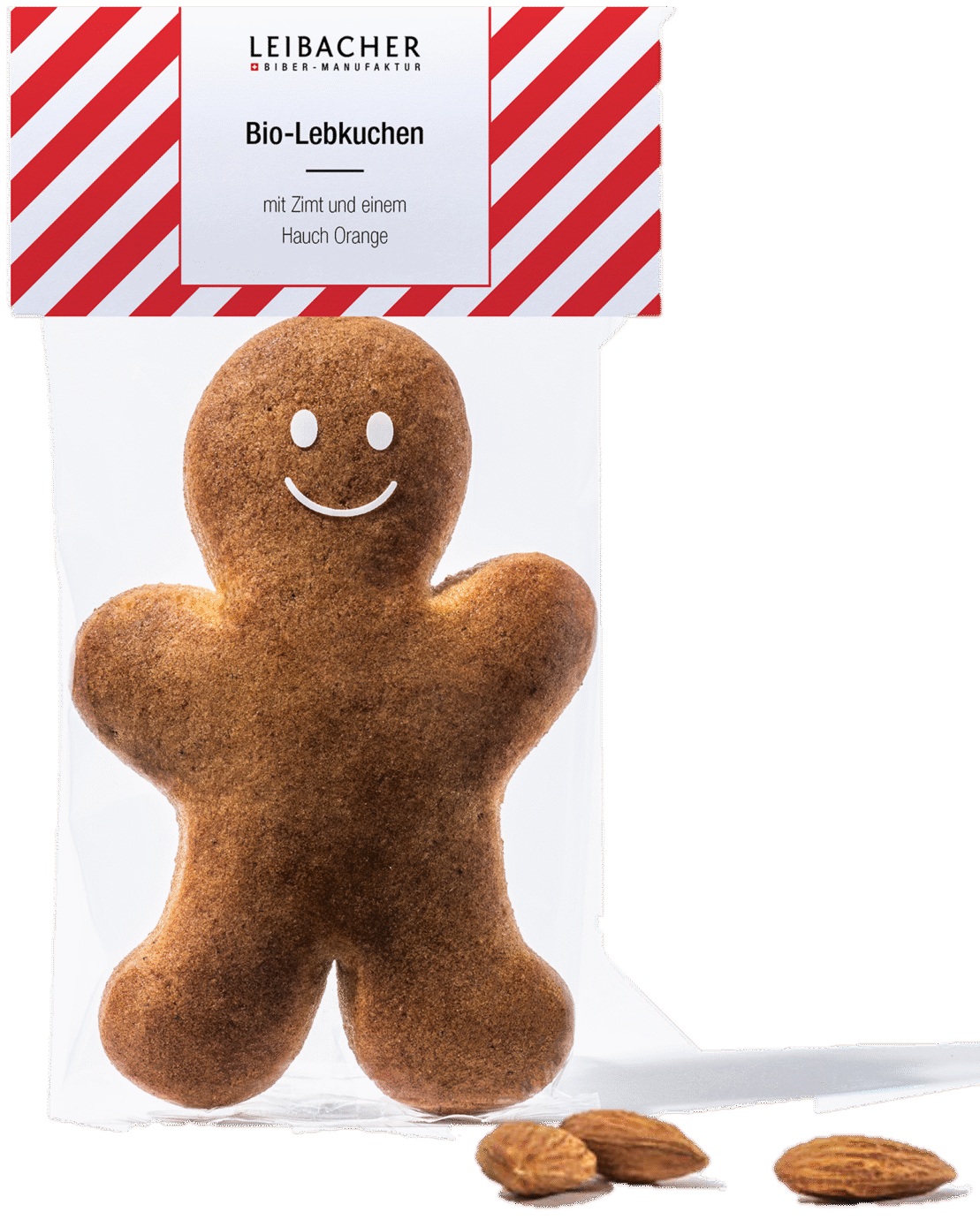 Pain d’épices bio de Leibacher Biber – une douceur artisanale pour un moment festif uniqueNotre pain d’épices bio séduit petits et grands avec les plus beaux arômes de Noël : des épices fraîchement moulues telles que le clou de girofle, la cannelle et la cardamome, et une touche d’orange fraîche et juteuse lui confèrent son goût inimitable. Les amandes et la farine de la région de Zurich apportent une texture délicate et agréable. Notre bonhomme en pain d’épices évoque la pure magie des fêtes – une douceur nostalgique qui nous ramène en enfance.