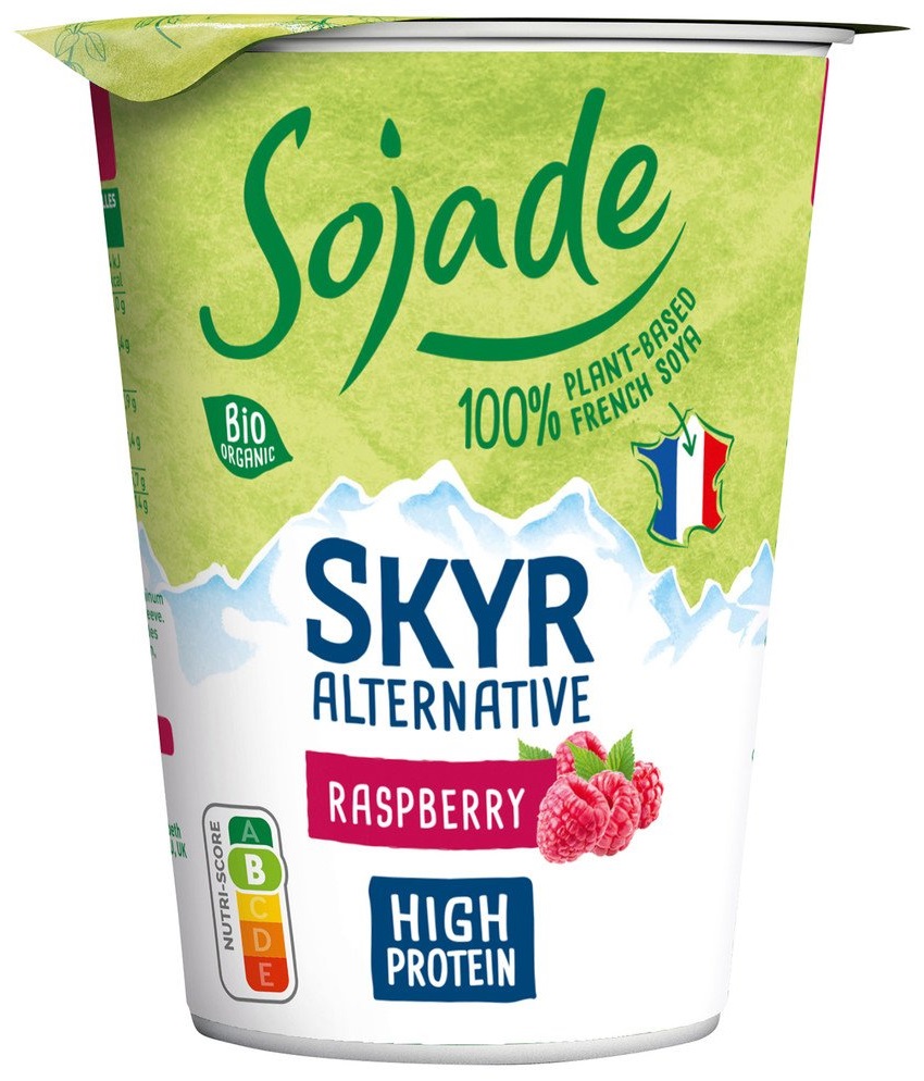 Sojade Soja ! Alternative au skyr. Des framboises avec des fèves de soja bio 100% françaises.Avec cette alternative au skyr, Sojade propose un produit qui apporte toute la saveur à votre table avec seulement quelques ingrédients. Le skyr végétal riche en protéines ne contient pas de sucre et a une consistance ferme mais délicieusement crémeuse. Comme toujours, la promesse de Sojade s'applique : Les fèves de soja proviennent à 100% de France et sont exemptes d'OGM. Un partenariat étroit avec les producteurs garantit des matières premières Sojade de la plus haute qualité.